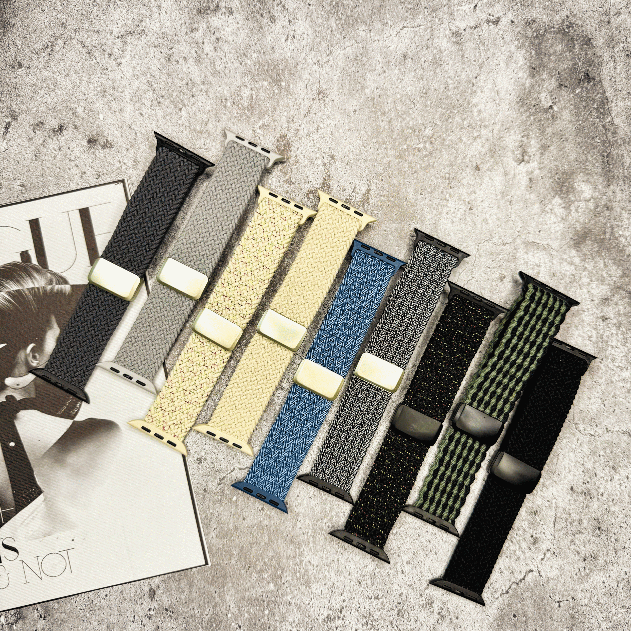 بند کنفی مگنتی از جنس پارچه کِشی مرغوب و آهنربا بسیار قوی تشکیل شده است که مناسب برای آقایان و بانوان می باشد همچنین از این بند ساعت هوشمند می توان به صورت رسمی و هم روزمره استفاده نمود